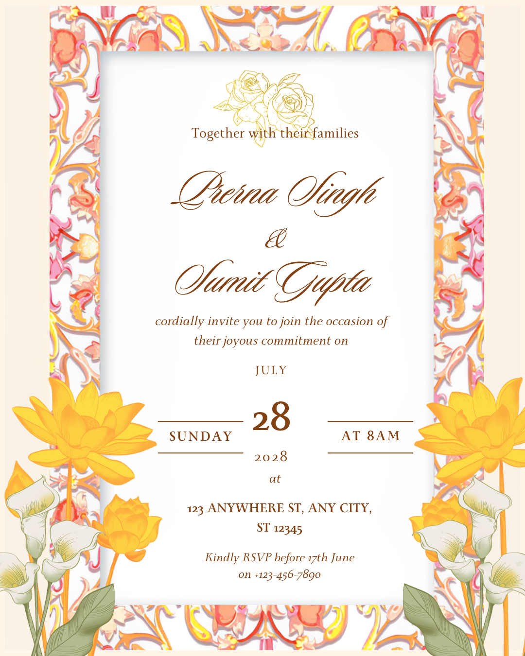 Beautiful and customizable digital wedding invitation card — perfect for sharing on WhatsApp or printing. Elegant designs for every wedding theme.