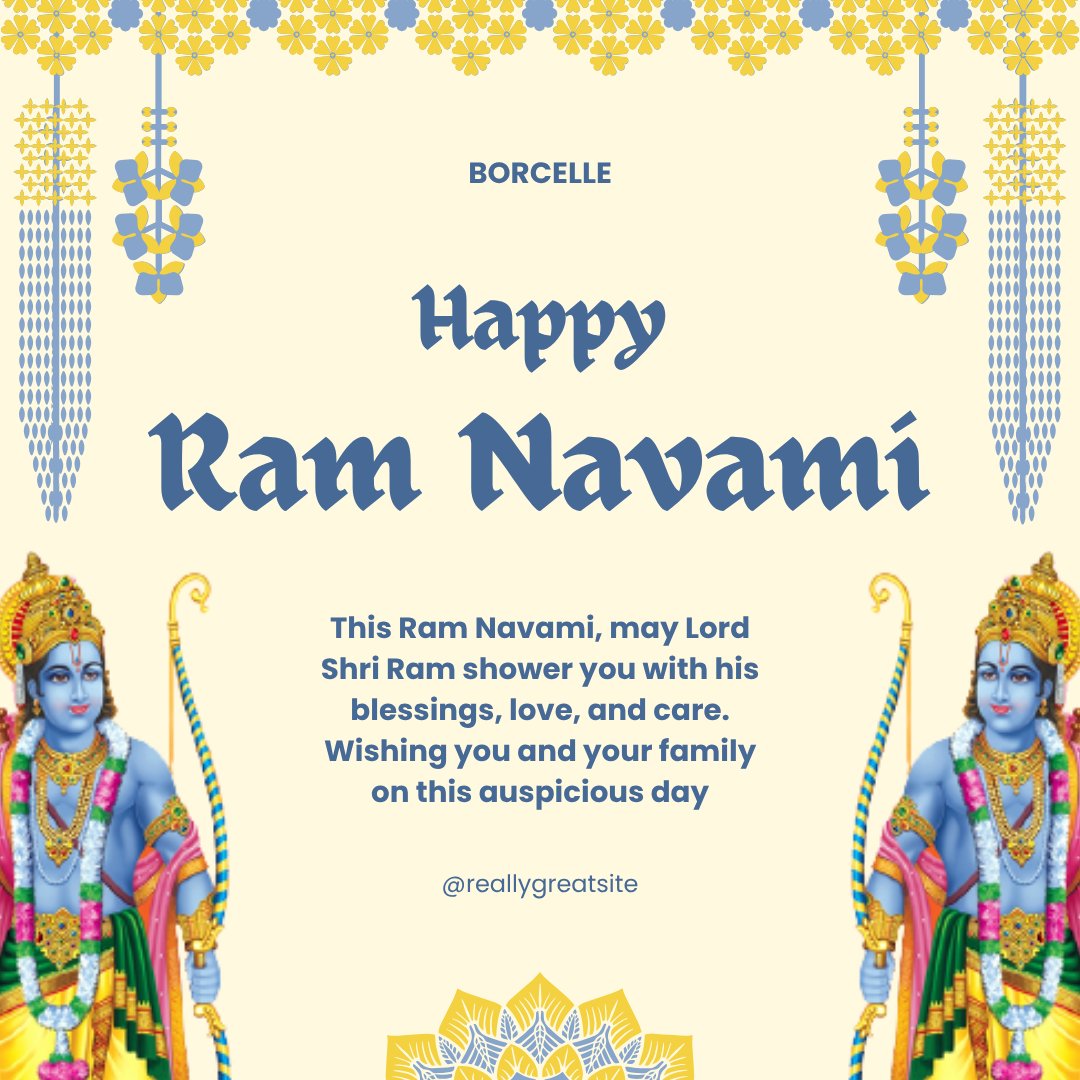 Customizable Sri Ram Festival digital greeting card. Change colors, names, and details instantly. Perfect for sharing festive happiness!